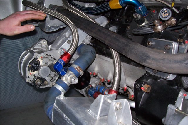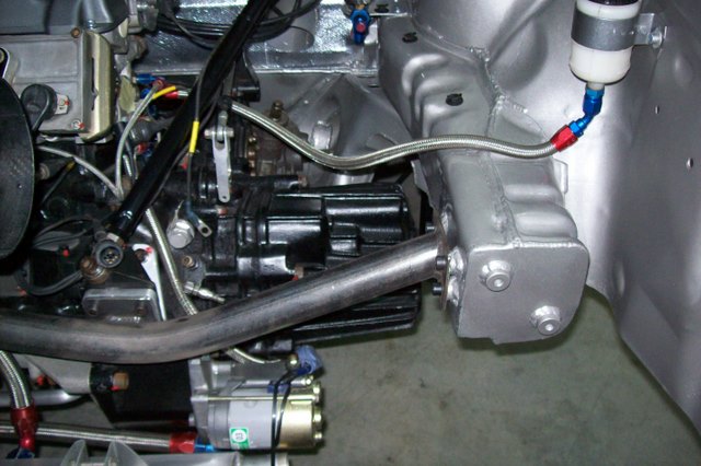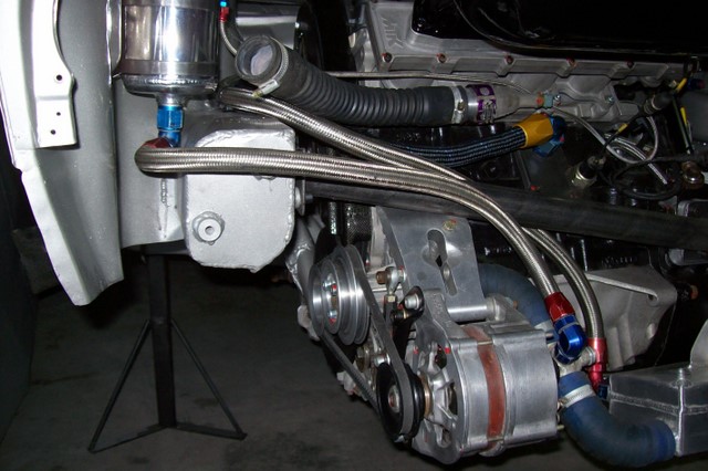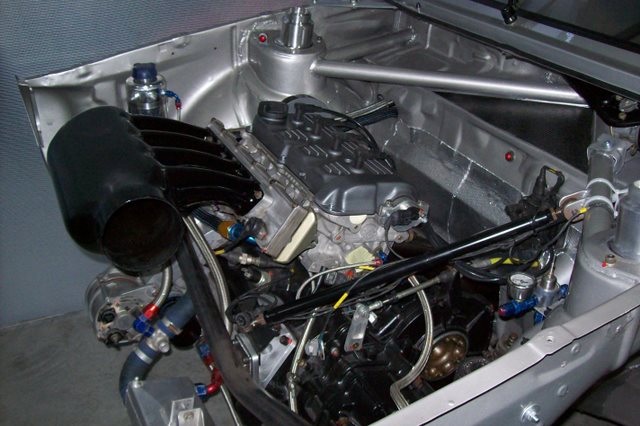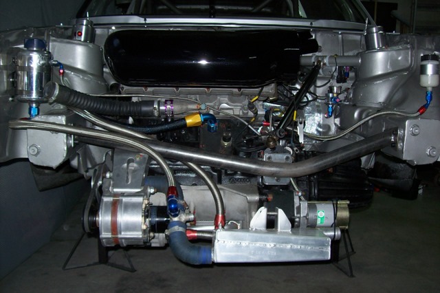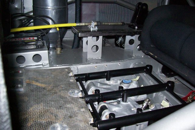 Quelques photos en cours de travaux avec en vrac une vue générale de la baie moteur avec une nouvelle traverse, l'échangeur huile/eau, la boite X-track, l'injection, le carter sec la nouvelle disposition de la direction d'origine G3.