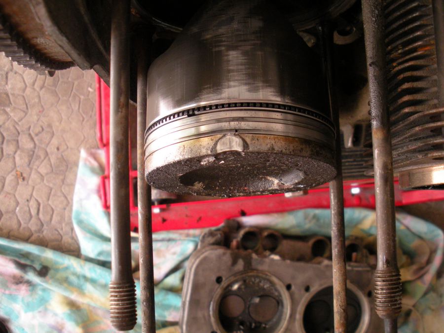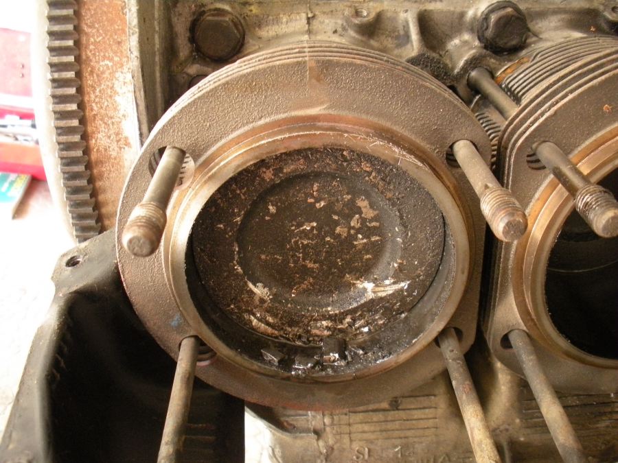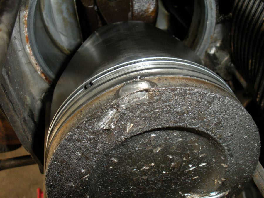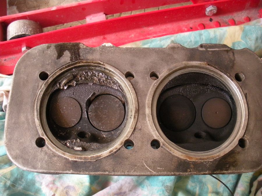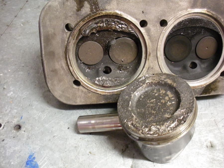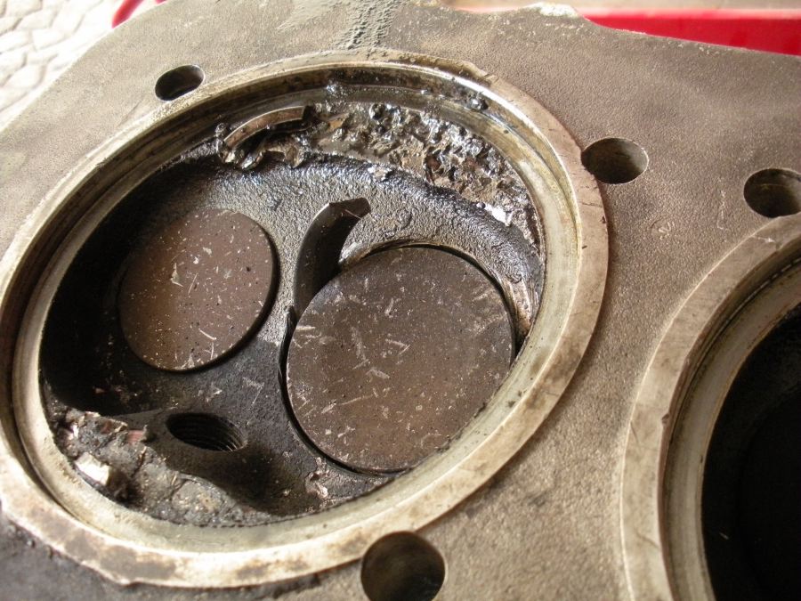 Un siège de soupape (l'admission du 3) est sorti de son logement, il s'est évidemment cassé et des débris se sont encastrés dans la culasse et la tête de piston.