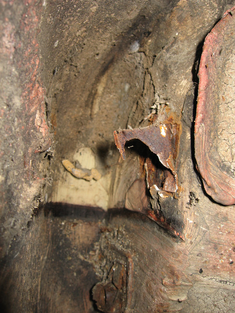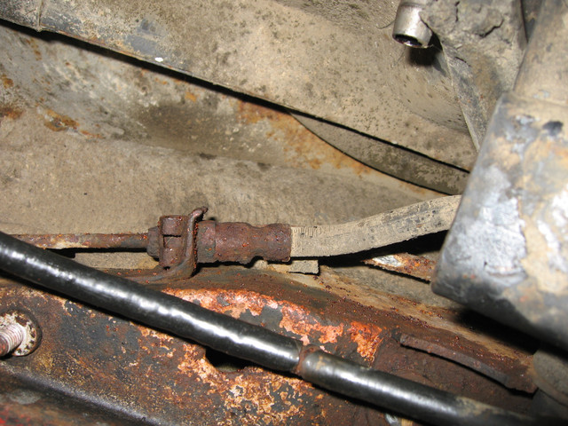 Les points nécessitant une attention plus forte sont vite identifiés, la goulotte est morte et sa fixation aussi, les flexibles de freins rouillés à mort, la jupe arrière bouffée par la rouille, et la carrosserie nécessite d’être reprise entièrement. Pour découvrir le reste, il faudra attendre un peu, des surprises, on en aura tout au long de la restauration, mais surtout au remontage en fait.