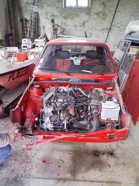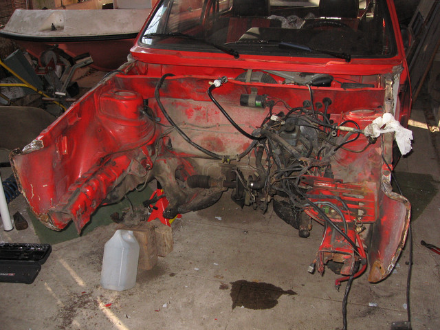 Sans méthode particulière, je vais d’abord m’attaquer à l’avant afin de faire sauter rapidement la façade qui sera la première étape de carrosserie.