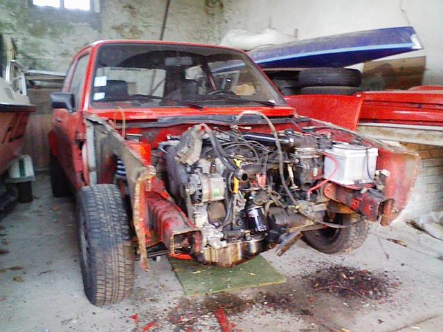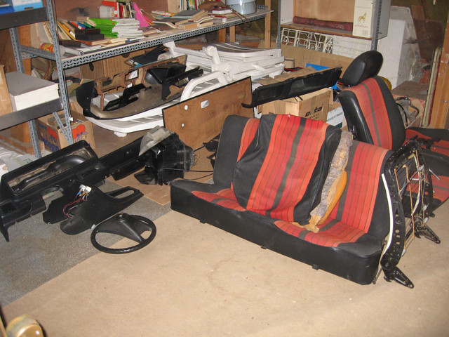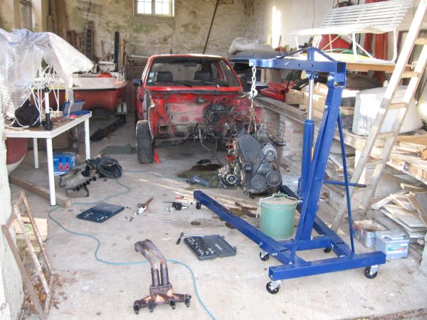 La voiture se retrouve progressivement en pièces dans le grenier, au fur et à mesure que les travaux avancent.